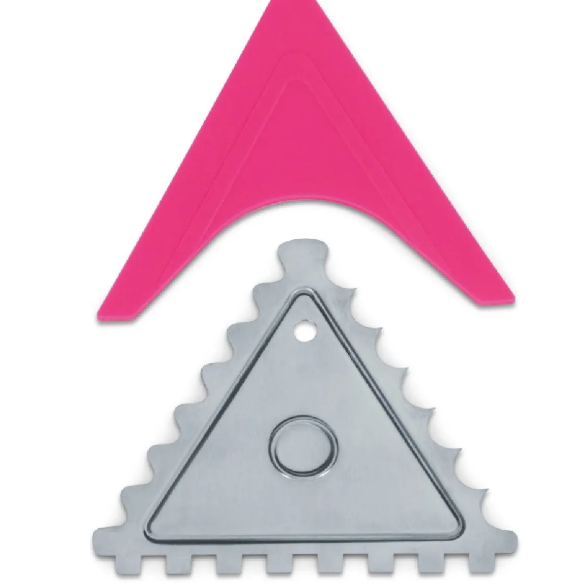 De Städter Garneer / Decoratie Krabber 3-in-1 Grof heeft een driehoek vorm en kan gebruikt worden voor het afwerken van taarten. De 3 zijkanten geven elk een andere structuur aan de taart. Onwijs handig om een leuk patroon te geven aan laagjes taarten, die bijvoorbeeld afgewerkt zijn met botercrème. Verder ook ideaal voor het bewerken van royal icing, ganache of chocolade.