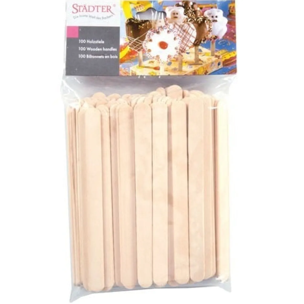 Houten platte ijsstokjes van Städter verpakt in een plastic zakje. De stokjes zijn geschikt voor in de oven.