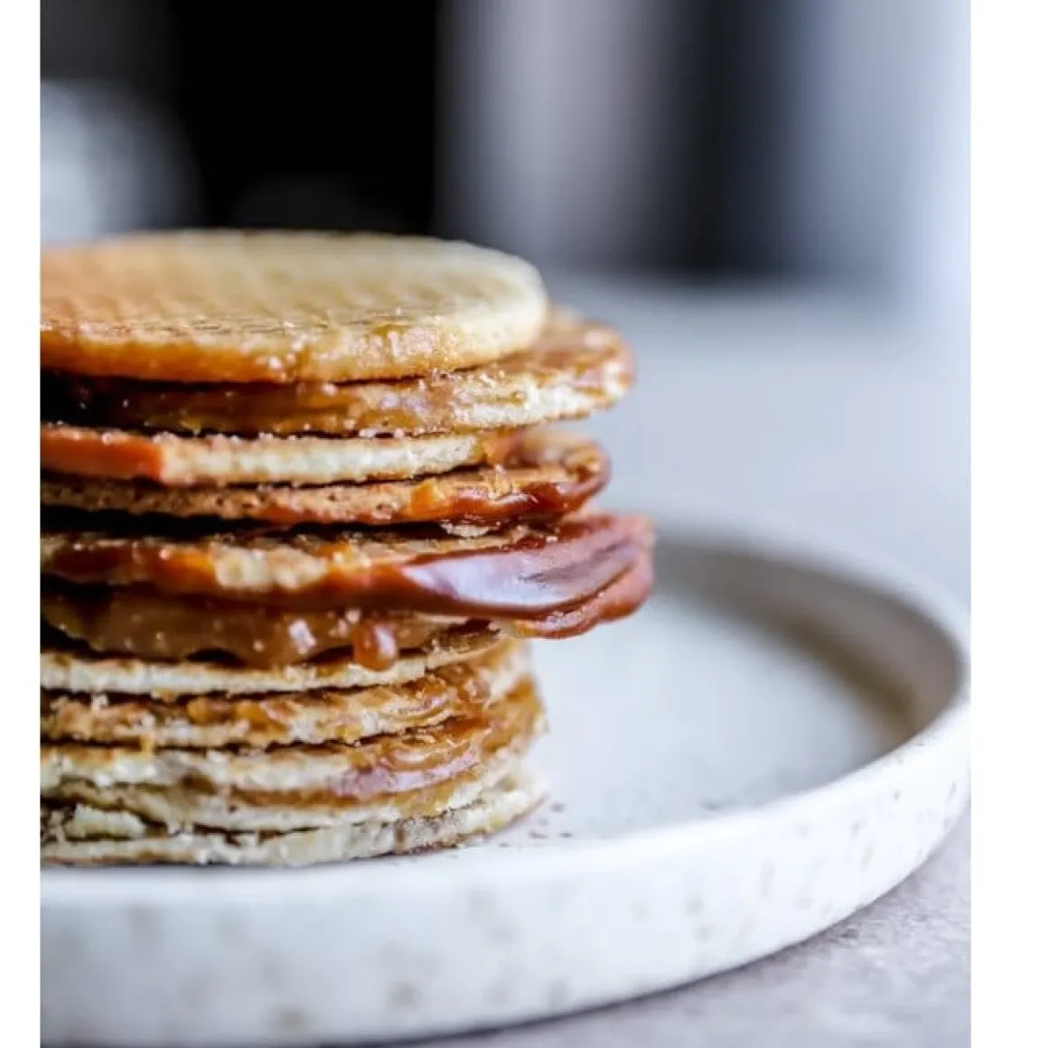 4. Snijd direct na het bakken met een ronde uitsteker de randjes van de wafel af en snijd de wafel met een scherp mes doormidden. Nu kan de wafel gevuld worden met stroop.
