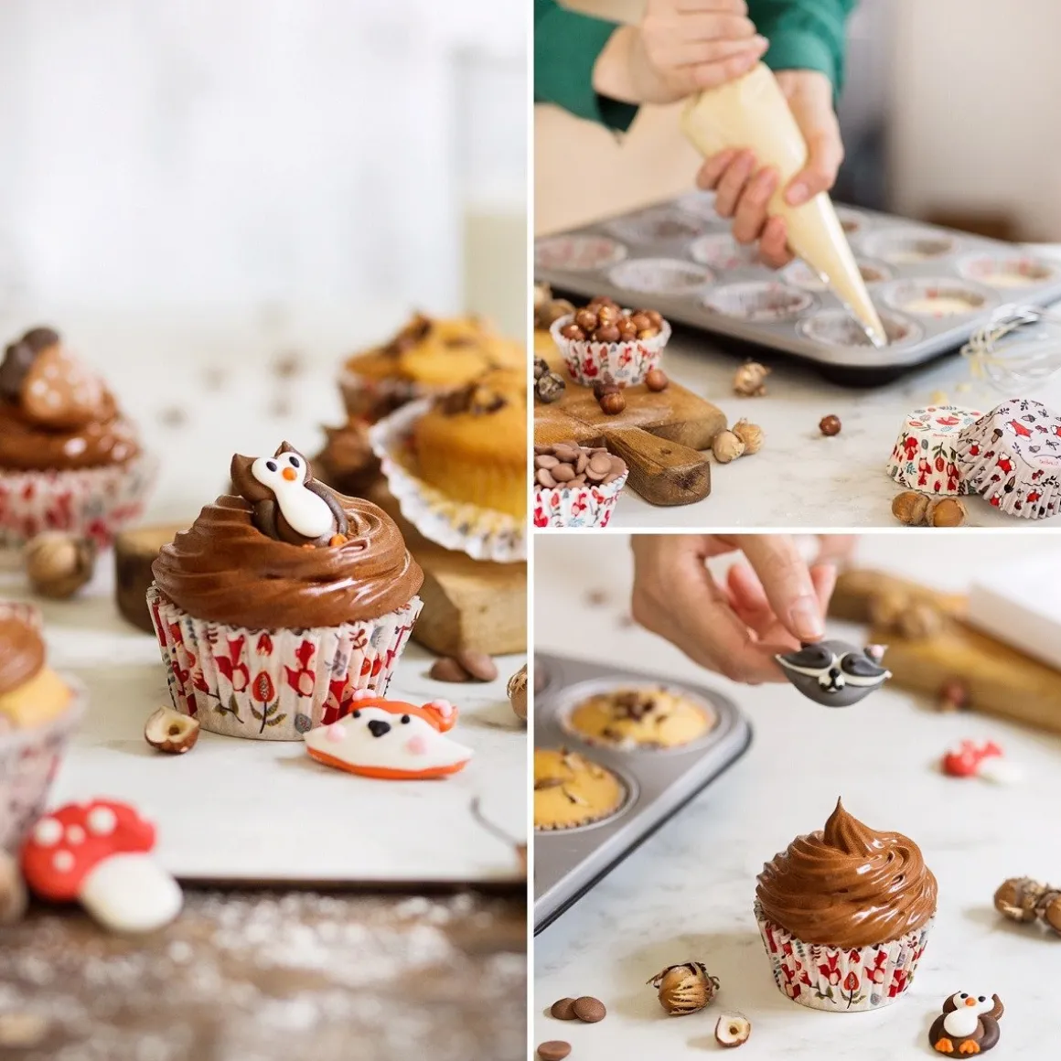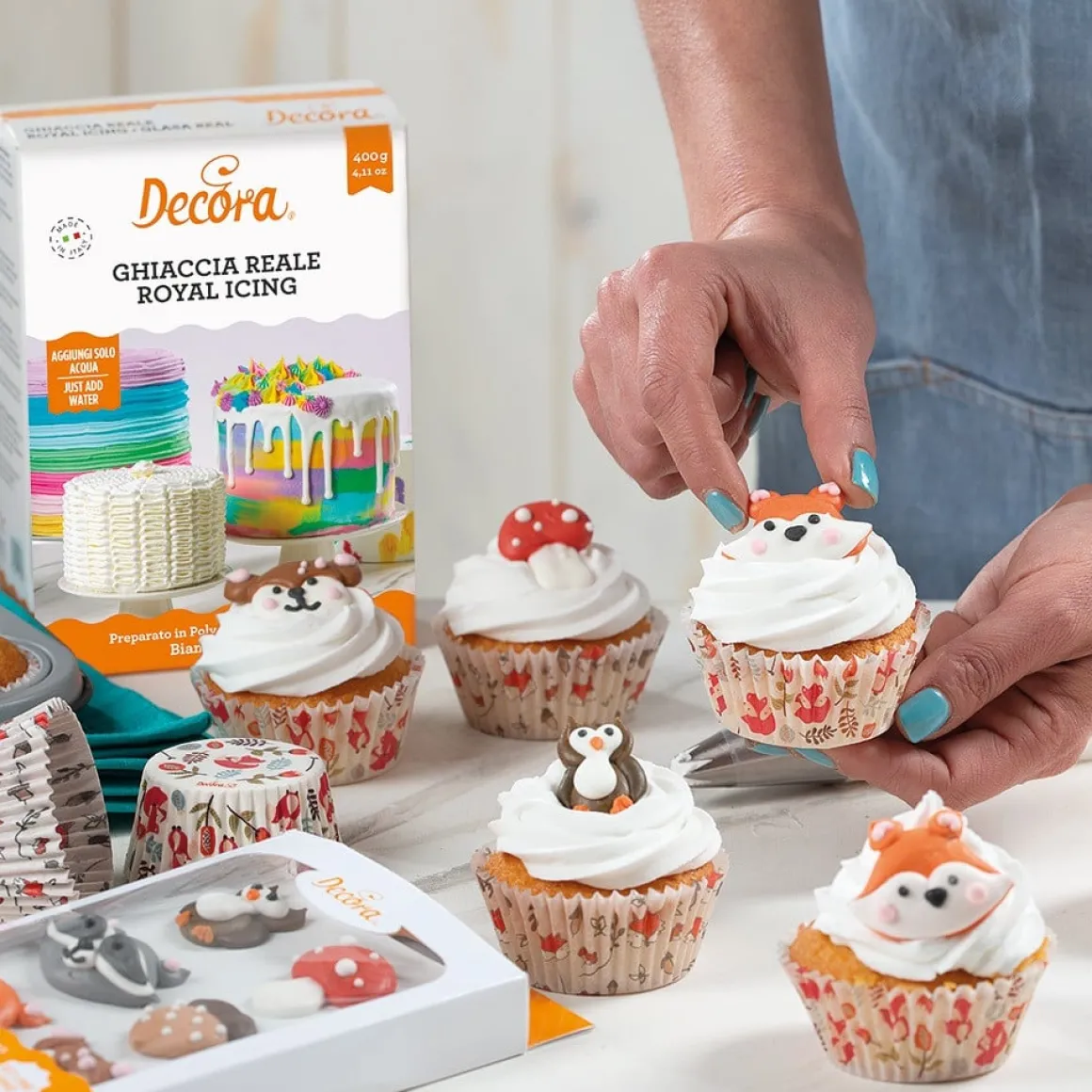 Het is schemerig, er vallen bladeren van de bomen en daar loop je dan met je laarzen door de bladeren in het bos. In de herfst komen de dieren in het bos tot leven om eten te zoeken, om daarna een winterslaap te kunnen houden. Met deze suikerdecoratie van Decora heb je alle bos dieren, inclusief eikels en paddenstoelen in huis om prachtige herfst taarten, cakes, cupcakes of andere bakcreaties te maken. Bak heerlijke cupcakes met een herfstachtige cupcake cup, spuit er een mooie toef op, een prachtige suikerdecoratie van bosdieren er op en klaar is je magnifieke herfst cupcake!