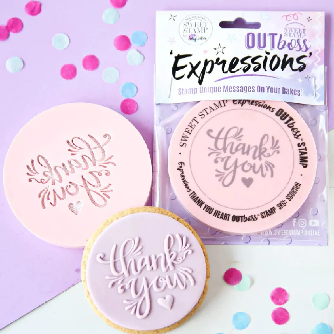 Met de Sweet Stamp Outboss Thank You Heart kun je vrij gemakkelijk prachtige 3D-opdrukken maken op onder andere sugar paste, fondant, gumpaste en modelleer chocolade. Het is bijvoorbeeld heel erg leuk om met dit product mooie opdrukken te maken op fondant en daarmee je koekjes en/of cupcakes te decoreren. Een OUTBoss™ is het tegenovergestelde van een Sweet Stamp element. Waar je met een element cijfers, letters en symbolen in bijvoorbeeld fondant drukt, lijkt het met een OUTBoss™ juist alsof cijfers, letters, en symbolen op het fondant zijn geplakt. Echter komt bij het gebruiken van een 3D-opdruk met een Outboss™ geen eetbare lijm kijken. De Outboss™ heeft het perfecte formaat om opdrukken te maken die precies op middelgrote koekjes en cupcakes passen. Je kunt eventueel apart een PickUpPad bestellen om het voor jezelf nog makkelijker te maken om dit product te gebruiken, deze is niet bij dit product inbegrepen.