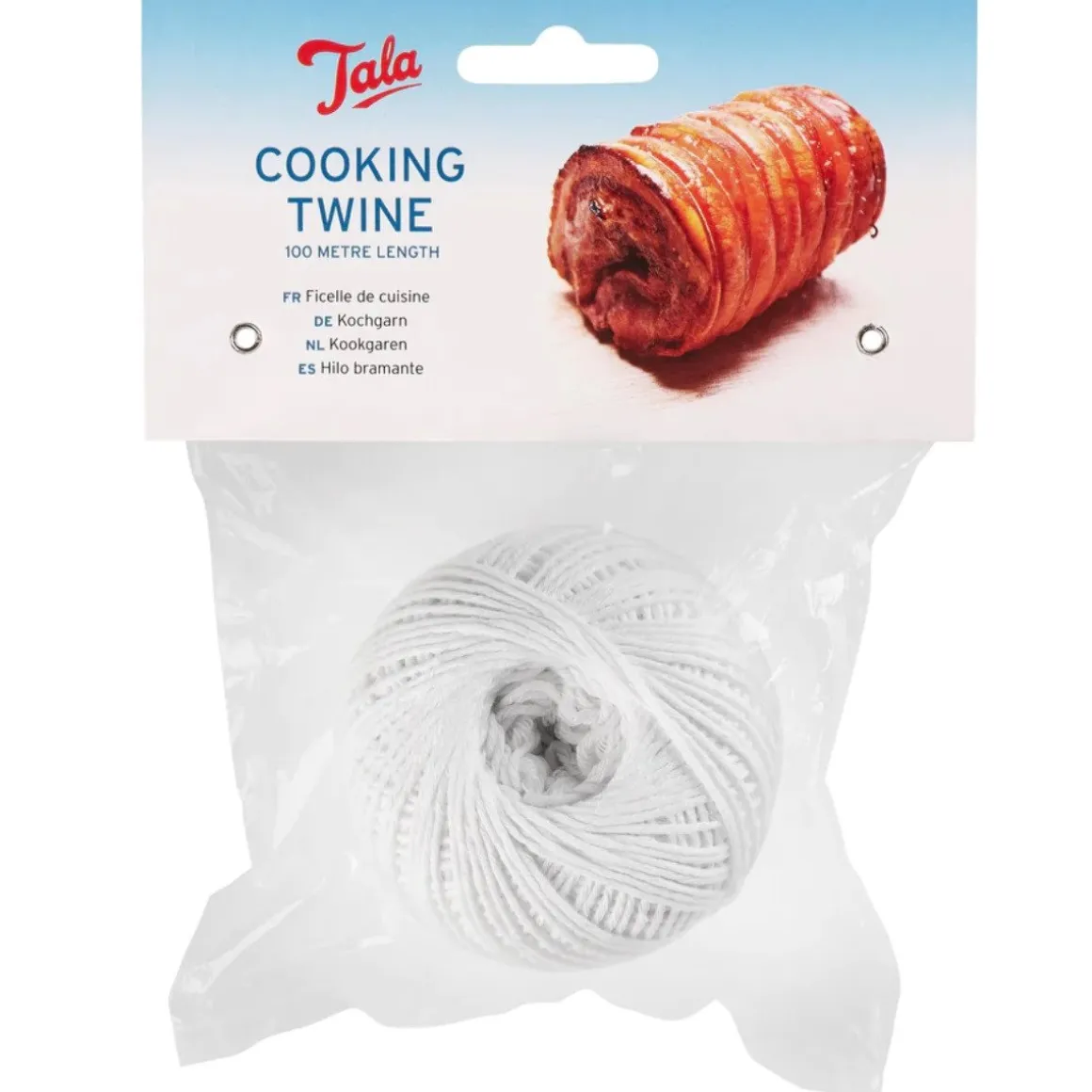 Het Tala Keukentouw 100m is een multifunctioneel touw. Het touw heeft een witte kleur en is gemaakt van een dik en sterk materiaal. Dit keukentouw is voedselveilig en kan gebruikt worden om te koken. Gebruik dit touw om vlees, groente of kruiden te binden. Uiteraard kun je het touw ook als decoratie voor bijvoorbeeld een cadeautje gebruiken. De verpakking bevat 100 meter touw.