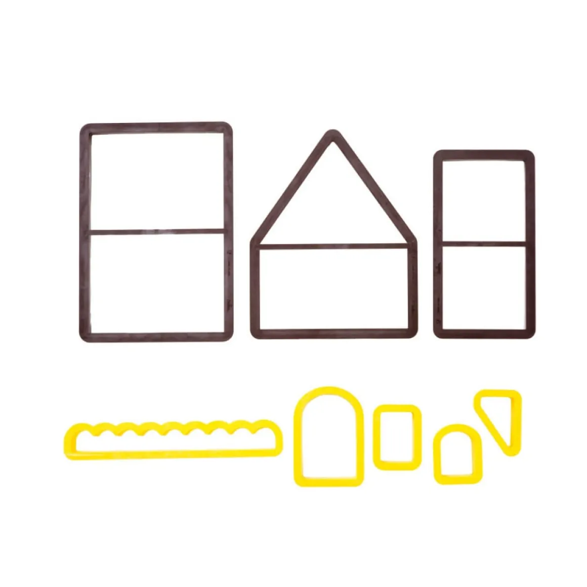 - De set bevat acht verschillende vormen voor het maken van verschillende huizen