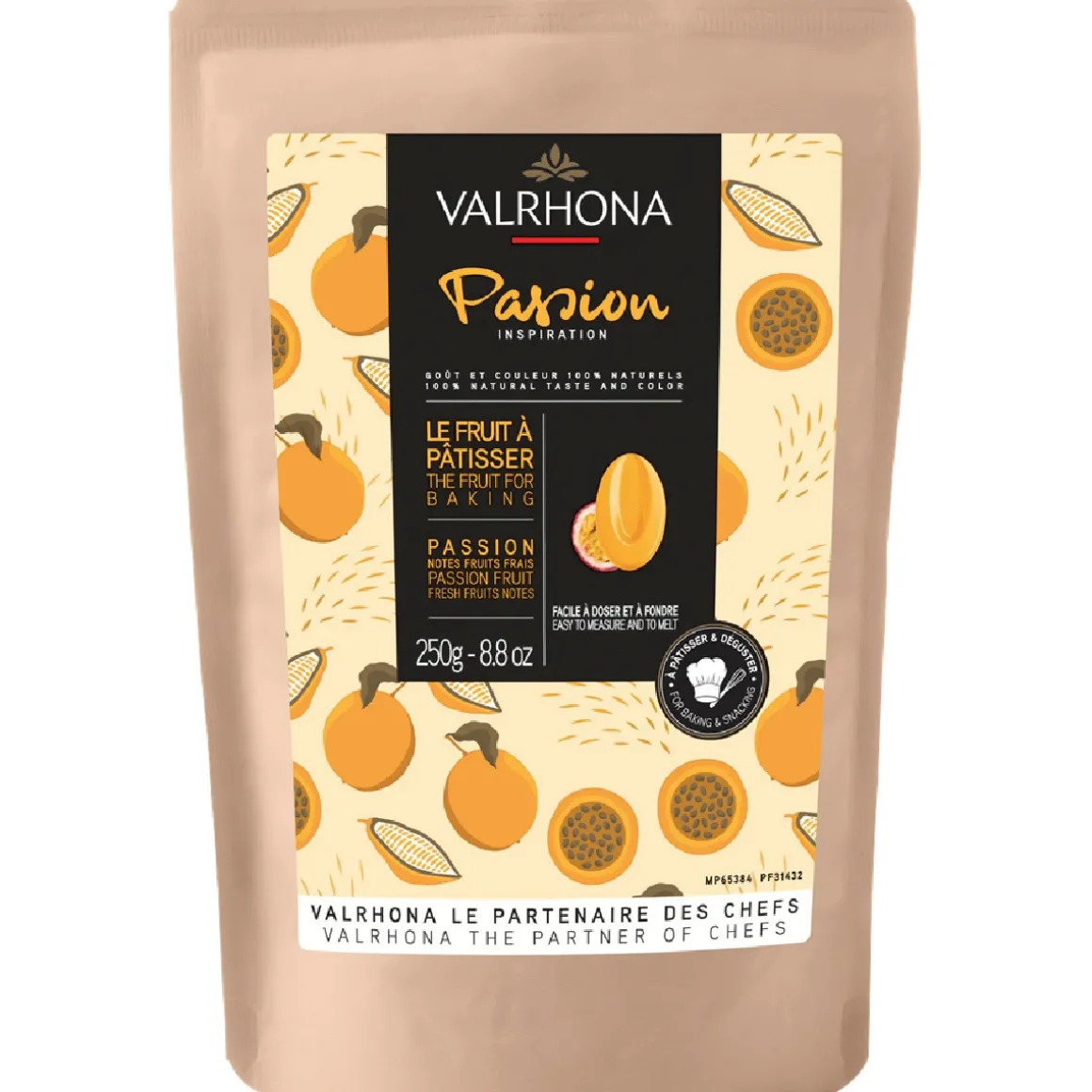 De Valrhona Chocolade Druppels Passievrucht 250g zijn een perfecte combinatie van tropische frisheid en romige, zachte cacaoboter. Deze friszure chocolade is geschikt voor uiteenlopende creaties. In het zakje zit 250 gram aan druppels, die gemakkelijk smelten.