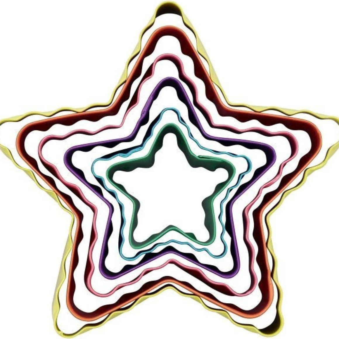 De Wilton Uitstekers Ster Dubbelzijdig Set/6 bevat 6 uitstekers in allerlei vrolijke kleuren. Deze hebben een vorm van een ster en zijn voorzien van zowel een gladde als gekartelde rand. De grootste ster is ruim 7 centimeter en de kleinste ongeveer 2,5 centimeter. Perfect voor allerlei bakcreaties.